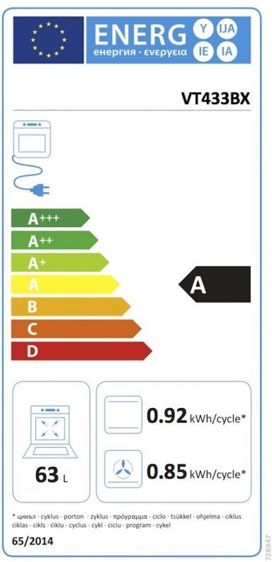 U nerezovej vstavanej multifunkčnej rúry VT 433 BX s praktickými zatláčacími gombíkmi, kedy vysunutím gombíku jednoducho nastavíte požadovaný program pečenia a teplotu alebo ich môžete plne zasunúť pre dokonalé vyčistenie predného panelu. Vďaka digitálnym programovateľným dotykovým hodinám už nikdy nespálite obed, je možné nastaviť odložený štart a ukončenie pečenia, iba ukončenie pečenia a minútku. Samozrejmosťou je aktuálny čas. Výkonná rúra má celkom 8 rôznych programov, medzi ktoré patrí horné a spodné vyhrievacie teleso, kruhové teleso s ventilátorom, funkciu na ohrev tanierov či obzvlášť šetrné rozmrazovanie. Teplovzdušné pečenie umožňuje piecť vo viacerých vrstvách naraz rôzne druhy pokrmov, kedy pri pečení nedochádza k vzájomnému ovplyvneniu odlišných chutí a vôní, napríklad mäsa s koláčom. Špeciálny program na čistenie rúry ECO CLEAN Vám zaistí bez veľkej námahy vyčistenie vnútra rúry, program je navyše maximálne ohľaduplný k životnému prostrediu a Vašim nákladom na čistiace prostriedky. Nové závesy dvierok KOMFORT zaručujú bez Vašej asistencie veľmi tiché a šetrné zatváranie dvierok rúry. Spoločne s rúrou je dodávané aj príslušenstvo v podobe roštu, plytkého a hlbokého plechu.Podrobné informácie