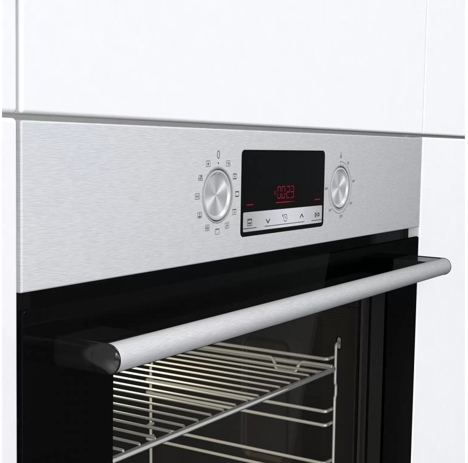 Predstavujeme vám všestranného pomocníka na domáce pečenie. Táto elektrická rúra v poctivom nerezovom prevedení má všetko, čo potrebujete pre dokonale prepečené pokrmy, a navyše tiež ponúka mnoho funkcií, ktoré vám ušetria čas aj prácu. Okrem intuitívneho dotykového ovládania hodín si vás získa predovšetkým 10 rôznymi programami pečenia, ktoré sú navrhnuté presne podľa potrieb konkrétnych jedál. Vykúzlite napríklad výbornú pizzu ako z talianskej reštaurácie (program Pizza 300 °C), pomaly upečiete pečienku a efektívne rozmrazíte hotové porcie jedla. S funkciou gratinovania zase získate chrumkavú syrovú kôrku na zapečených zemiakoch. Iste tiež využijete funkciu odloženého štartu pečenia s automatickým vypnutím alebo funkciu pečenia v krokoch. Vďaka nej dopredu naprogramujete priebeh pečenia vyžadujúci zmeny teplôt. Klenutý vnútorný priestor rúry je inšpirovaný tradičným tvarom kamennej pece. Chytro rozmiestnené vyhrievacie telesá a extra veľký objem 77 l zaručujú dokonale prepečené a chrumkavé jedlo zo všetkých strán. Túto vlastnosť oceníte najmä pri príprave hydiny alebo domáceho chleba. Rúra vás zaujme aj variabilným rozpätím teploty od 50 do 300 °C. Veľké presklené dvierka a perfektné osvetlenie vám umožnia kontrolovať priebeh pečenia, takže nemusíte rúru otvárať. Tým zamedzíte zbytočnému poklesu teploty a úniku energie. Perfektné vyčistenie parou zaistí funkcia ECO CLEAN, s ktorou odstránite aj väčšie nečistoty bez nutnosti použiť čistiaci prostriedok. Rúra spadá do ekologickej triedy A.Podrobné informácie
