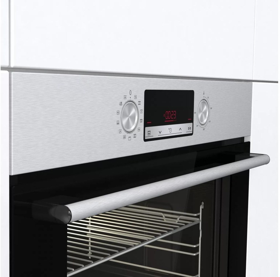 Táto elektrická rúra v poctivom nerezovom prevedení vám okrem tradičného pečenia otvorí dvere k ďalším moderným tepelným úpravám pokrmu. Disponuje funkciou pary, ktorú ocenia predovšetkým priaznivci zdravej výživy. Pripravíte s ňou jedlá rýchlo a šetrne, takže si zachovajú maximum vitamínov a stopových prvkov. Navyše vás prekvapí výborná chuť a prirodzená konzistencia výsledných jedál. Pokiaľ si radi pochutnávate na hranolkách alebo kuracích nugetách, ale nedoprajete si ich tak často kvôli vysokej kalorickej hodnote, môžete tiež skúsiť program pre teplovzdušné fritovanie bez tuku. Ďalej je rúra vybavená 12 programami pečenia, ktoré sú navrhnuté presne podľa potrieb konkrétnych jedál. Vykúzlite napríklad výbornú pizzu ako z talianskej reštaurácie (program Pizza 300 °C), pomaly upečiete pečienku a efektívne rozmrazíte hotové porcie jedla. Teleskopický rošt zabezpečí ľahšiu a bezpečnejšiu manipuláciu s plechom, zatiaľ čo tiché zatváranie a otváranie dvierok prinesie komfort pri každodennej prevádzke. Klenutý vnútorný priestor rúry je inšpirovaný tradičným tvarom kamennej pece. Chytro rozmiestnené vyhrievacie telesá a extra veľký objem 77 l zaručujú dokonale prepečené a chrumkavé jedlo zo všetkých strán. Túto vlastnosť oceníte najmä pri príprave hydiny alebo domáceho chleba. Rúra vás zaujme určite aj variabilným rozpätím teploty od 50 do 300 °C. Perfektné vyčistenie parou zaistí funkcia ECO CLEAN, vďaka ktorej odstránite aj väčšie nečistoty bez nutnosti použiť čistiaci prostriedok. Rúra spadá do ekologickej triedy A.Energetická nenáročnosť