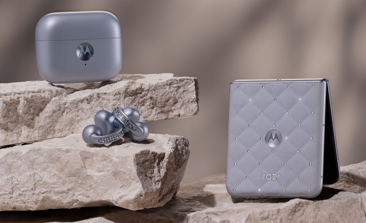 súčasťou balenia sú aj dizajnové slúchadlá Moto Buds Loop s krištáľmi Swarovski
