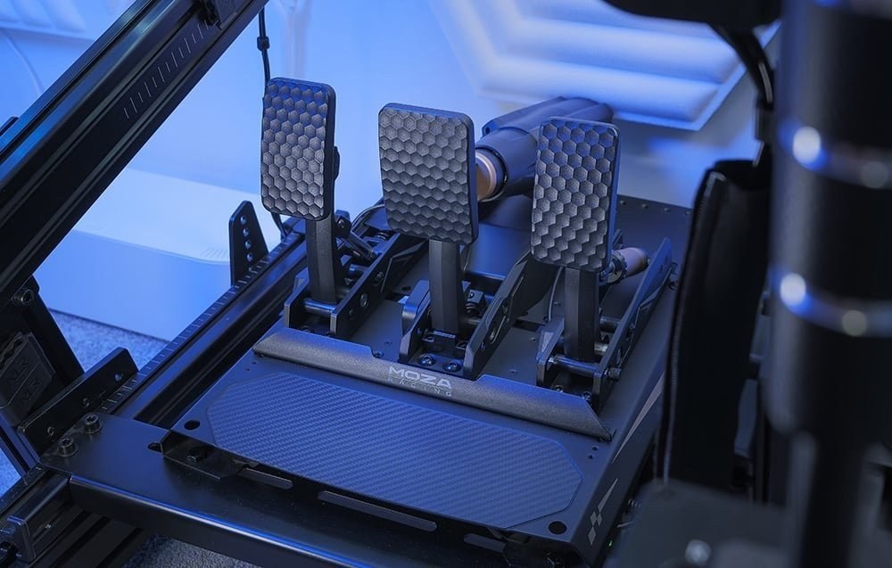 200 kg tlakový snímač použitý v brzde umožňuje replikovať takmer celý rozsah brzdnej sily známy zo skutočných pretekárskych vozidiel, čím podporuje rozvoj svalovej pamäte a umožňuje presné ovládanie brzdnej sily. V kombinácii s 15-bitovým uhlovým snímačom a patentovaným algoritmom fúzie snímačov poskytuje súprava výnimočnú presnosť a plné využitie schopnosti ovládať brzdnú silu pri zachovaní prirodzeného pocitu z pedálu. Virtuálne preteky ešte nikdy neboli také realistické!Nastaviteľný pedál a spojka