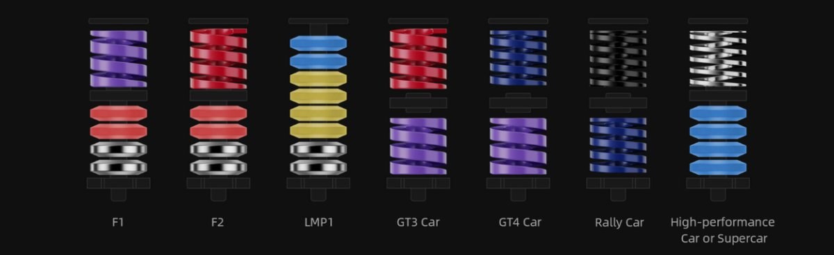 Súprava obsahuje pružiny rôznej tuhosti a kovový blok na obmedzenie zdvihu pedálu, čo umožňuje presné dávkovanie brzdnej sily a simuláciu tvrdého brzdenia ako v profi autách. Kombináciou pružín a tlmičov si brzdy nastavíte presne podľa svojho štýlu jazdy.Vlastnosti
