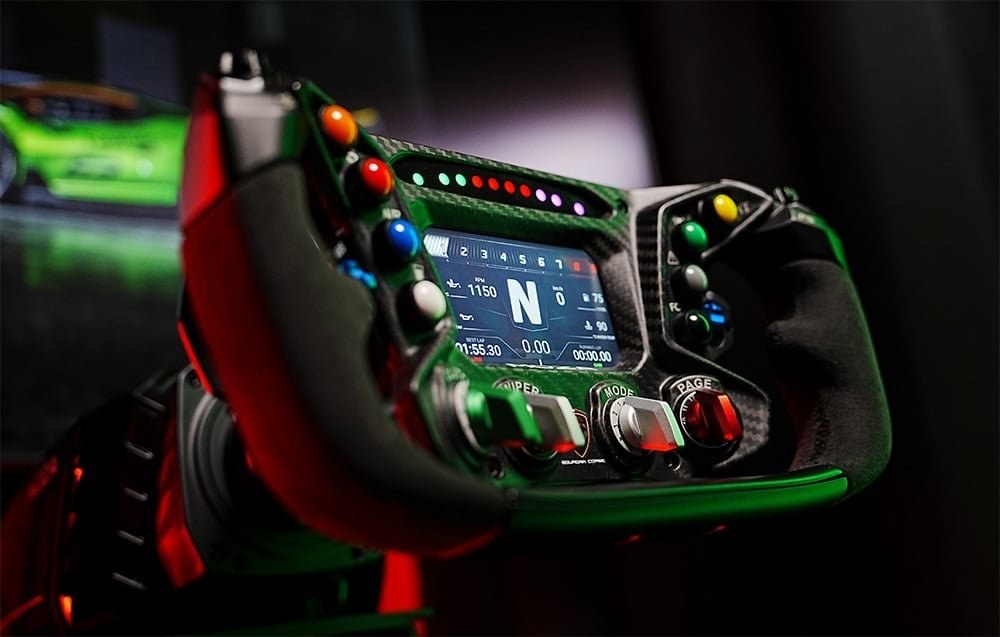 Prémiový sim-racing volant s LCD displejom, uhlíkovým telom a bezdrôtovým pripojením