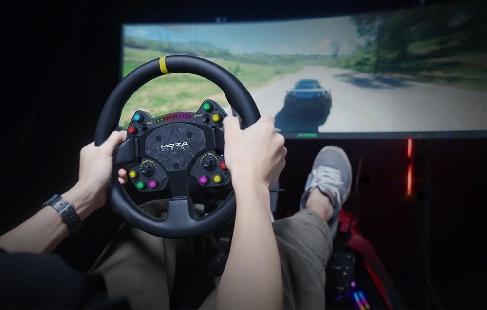 Moza Racing RS V2 RS25 je profesionálny volant s 13-palcovým vencom, magnetickými pádlami, RGB podsvietením a programovateľnými tlačidlami. Vyrobený z kovaného uhlíkového vlákna a prírodnej kože ponúka realistický zážitok, odolnosť a luxusný vzhľad. Ergonomický dizajn a rýchla montáž zaručujú maximálnu kontrolu pri jazde.Premyslený dizajn