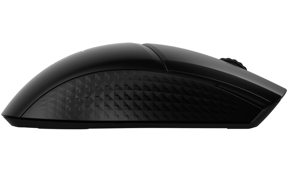 Tvar myši pohodlne padne do každej ruky. Mäkké, odolné gumené bočné rukoväte s diamantovou textúrou poskytujú úchop potrebný na udržanie kontroly.