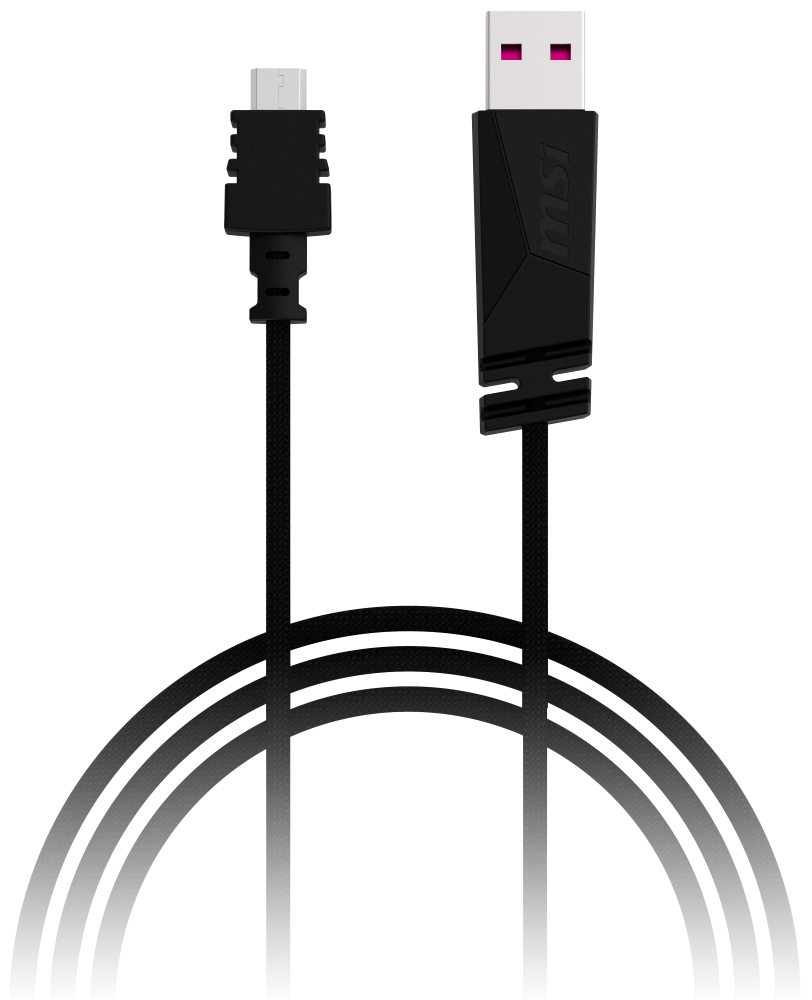 Odnímateľný kábel MSI FriXionFree je možné pripojiť k nabíjaciemu doku alebo priamo na myš, čo vám umožní pokračovať v boji, ak sa vám niekedy vybije batéria.