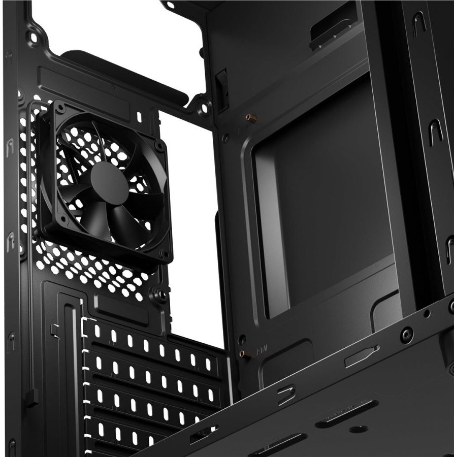 - Predinštalovaný 80mm výfukový ventilátor, 3-pinový, umiestnený v zadnej časti skrine.