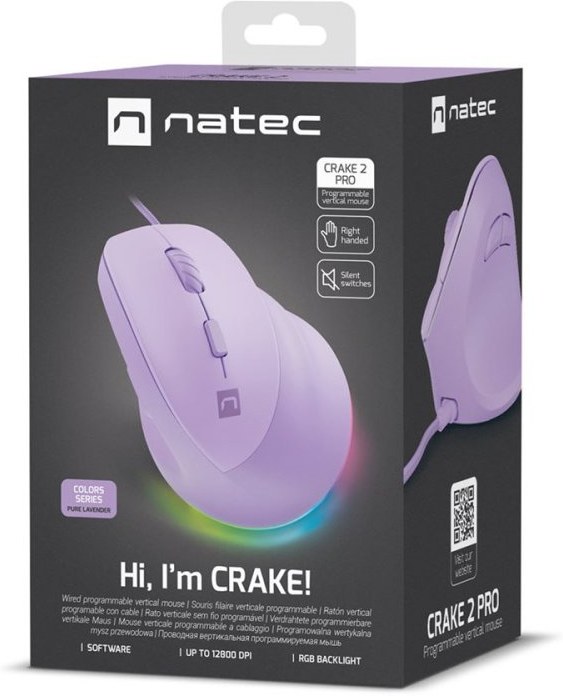 Natec CRAKE 2 PRO, vertikálna myš, fialová