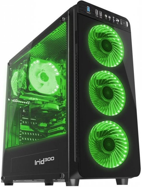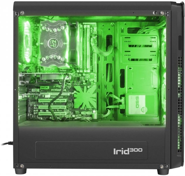 Irida 300 je jedinečný svojím preskleným predným panelom a celú presklenú bočnicou, ktoré sú vyrobené z odolného tvrdeného skla. Presklený predný panel vhodne dopĺňajú 3 ventilátory s podsvietením, ako aj prvok z brúseného hliníka, v ktorom sa nachádzajú 3 USB porty a 2 audio jack porty pre slúchadlá a mikrofón. Vďaka priehľadné bočnici sa môžete chváliť svojím nedupaným hardvérom pred známymi.