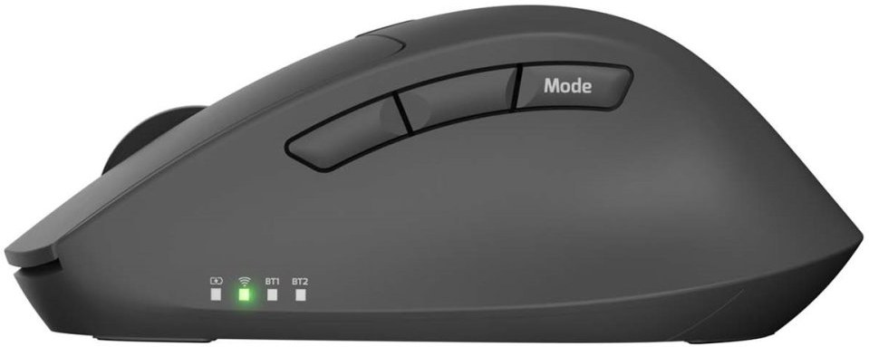 myš, kancelárska, pre pravákov, bluetooth a USB prijímač, optický senzor, nepodsvietená, 9 tlačidiel, tichý klik (silent click), max. citlivosť 4000DPI, čiernaZobraziť viac