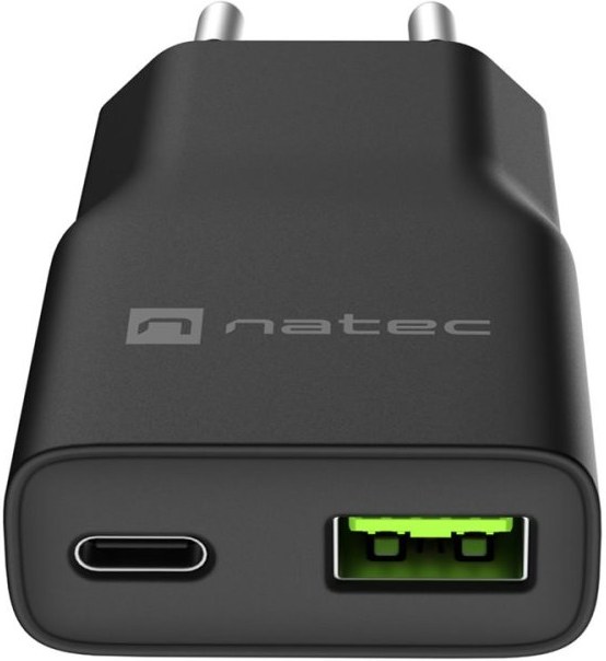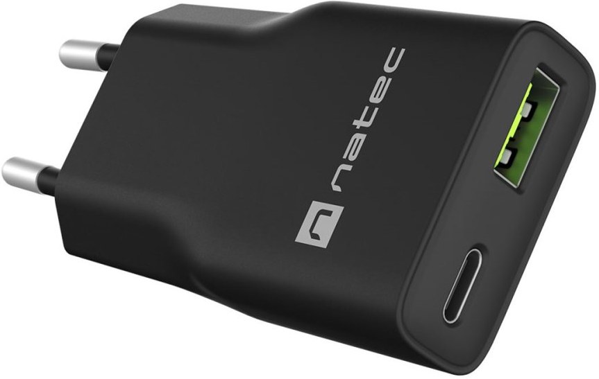 Natec Ribera, univerzálna USB nabíjačka GaN SLIM, 20 W, 1x USB-A + 1x USB-C, čierna