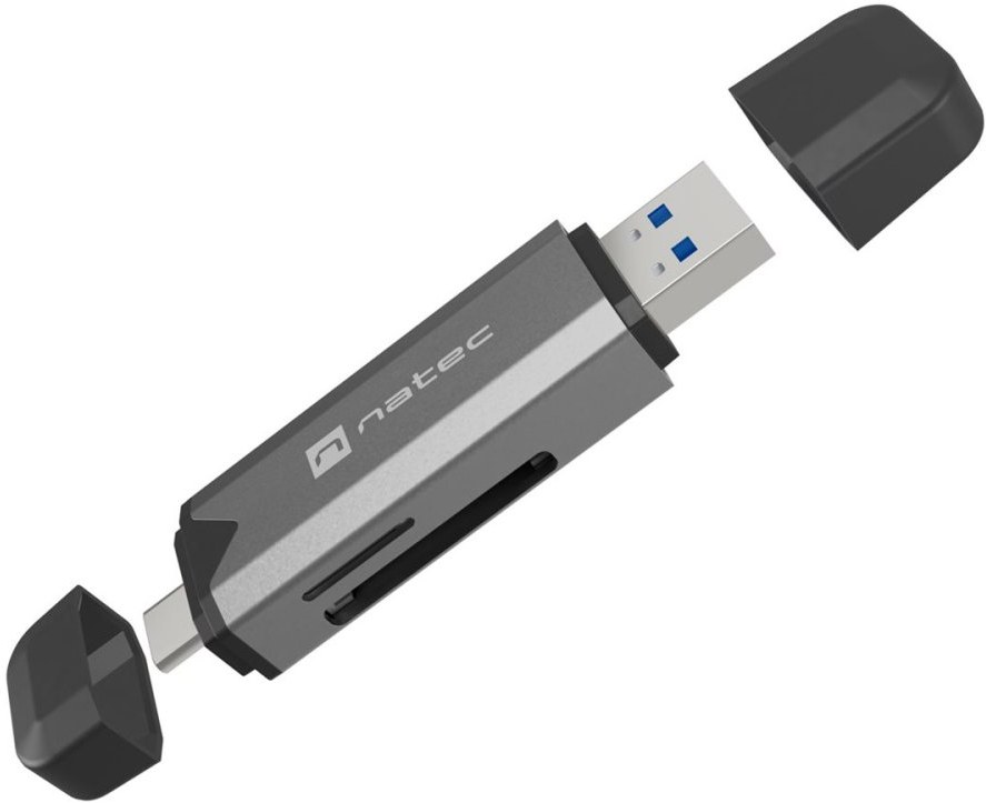 Natec SCARAB 3, čítačka kariet USB-A + USB-C 3.1 Gen 1, microSD, microSDHC, microSDXC, SD, SDHC, SDXC, T-Flash