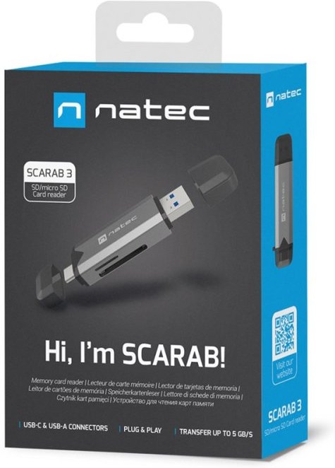 Môžete si byť istí, že Natec Scarab 3 zvládne karty microSD, microSDHC, microSDXC, SD, SDHC, SDXC, T-Flash s maximálnou kapacitou až 2 TB. A čo viac, po pripojení zariadenia Natec Scarab 3 k zariadeniam s podporou OTG je prezeranie obsahu pamäťovej karty jednoduchšie ako kedykoľvek predtým.