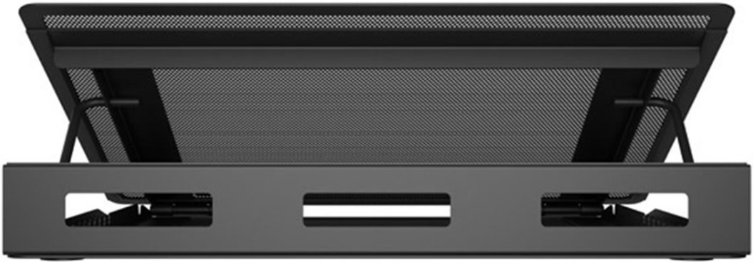 - Kovový predný panel s optimálnou veľkosťou ôk zvyšuje cirkuláciu vzduchu chladiacej podložky a znižuje tak riziko prehriatia zariadenia.
