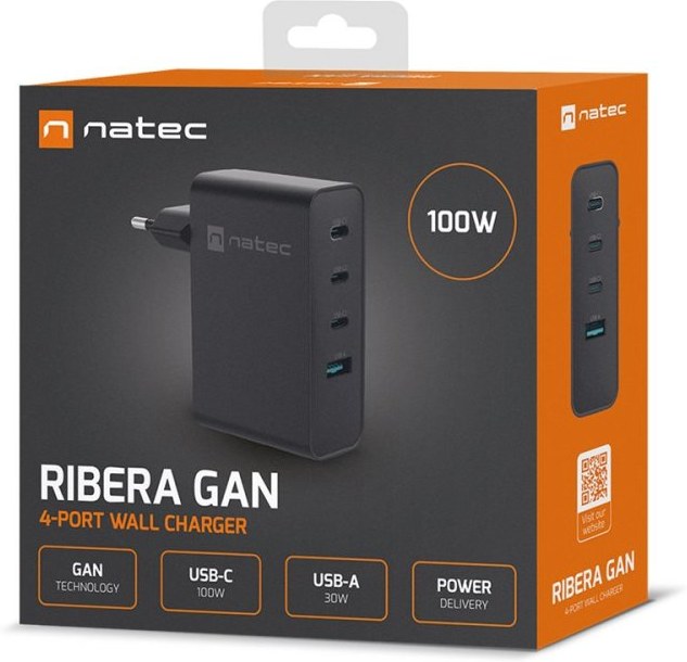 Okamžité nabíjanie viacerých zariadení s nižšou spotrebou energie? So zariadením Natec Ribera GaN s výkonom 100 W je to možné. Tu je nabíjačka s viacerými portami, ktorá umožňuje nabíjať až 4 zariadenia súčasne, vrátane notebookov podporujúcich štandard PD. Táto nabíjačka je navrhnutá na báze nitridu gália (GaN), čo sa prejavuje vo vyššej energetickej účinnosti a menších celkových rozmeroch. Je kompaktná, ľahká a účinná - a dokáže nabíjať všetky zariadenia, ktorými sa denne obklopujete. To je nabíjačka Natec Ribera GaN.Rýchle nabíjanie a vyššia účinnosť