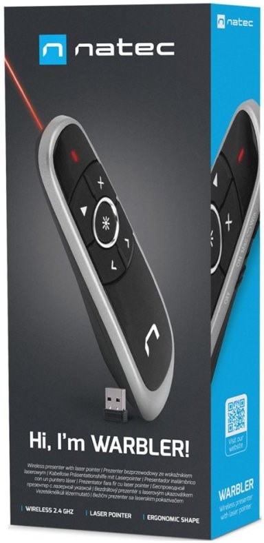 Natec Warbler 2 je spoľahlivé laserový prezentér, ktoré sa vám bude hodiť ako v konferenčnej miestnosti, tak pri práci na diaľku. Vďaka moderným funkciám a intuitívnemu ovládaniu poskytuje plnú kontrolu nad priebehom prezentácie a umožňuje vám sústrediť sa na to najdôležitejšie - na oznámenie.Plné ovládanie priamo pod prstami
