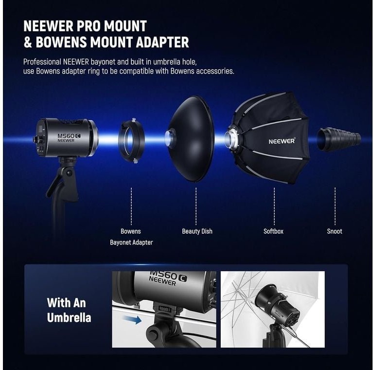 Neewer MS60C RGB trvalé štúdiové svetlo, Bowens, 8300Lux/1m, 2700-6500K, CRI97+, 65W, COB LED