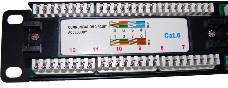 Na svorkovnici je z dôvodu ľahkého zakončenia dátového kábla značenia farbami podľa typu zapojenia, stroje a to buď podľa štandardu T568A, alebo T568B. Panel patrí do skupiny komponentov kategórie 6.