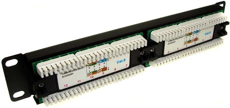 Panel je dodávaný s 12 porty RJ45 a je osadený modulmi so svorkovnicou Krone.