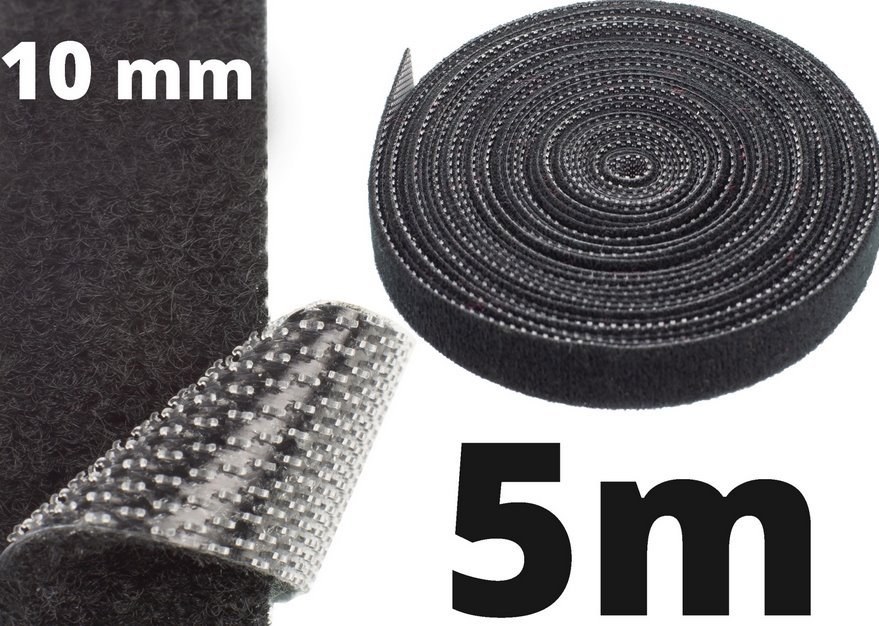 Páska na suchý zips NEKU 10mm 5m čierna pre usporiadanie káblov a vodičovBack to Back - obojstranný systém suchého zipsu (jedna strana háčik, druhá strana zamat), ktorý umožňuje organizovať drôty, káble a ďalšie.