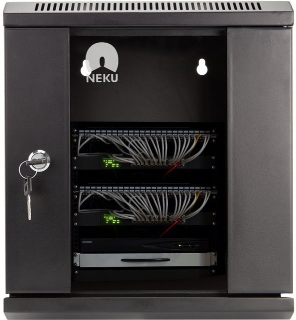 Séria závesných 10” stojanov NEKU je ideálnym riešením pre inštalácie v ICT sieťach, teletechnike, domácnostiach alebo malých kanceláriách.Vzhľadom na svoju kompatibilitu s metrickým štandardom, ETSI a medzinárodným 10-palcovým RACK štandardom sú tiež vhodné pre použitie v CCTV, RTV-SAT a Audio-Video sieťach, kde je stále viac oceňovaná ich všestrannosť, kvalita a jednoduché použitie. požadovaný. Otváracie bočnice a premyslené odvetrávanie zaisťujú komfort používania a dlhú životnosť zariadenia umiestneného vo vnútri skrine. Závesné rackové skrine NEKU 10” umožňujú správne usporiadanie aktívnych a pasívnych zariadení a vďaka efektívne navrhnutej pasívnej ventilácii poskytujú inštalovaným zariadeniam optimálne pracovné podmienky: chladenie, ochranu pred znečistením a ochranu pred neoprávneným prístupom. Zariadenia v nich namontované vychádzajú z medzinárodného 10” rackového štandardu, ale tiež tvoria základ pre neotočné a stolné zariadenia, ako sú: multiswitche, rekordéry, zosilňovače alebo napájacie zdroje. Na montáž týchto zariadení potom slúžia vyhradené regálové police.