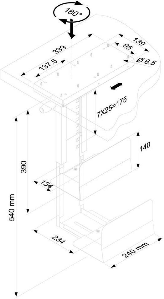 Otočný držiak na vertikálnu montáž počítača pod stôl. Ponúka ľahko nastaviteľnú šírku a výšku pre väčšinu stolných a vežových počítačov. Maximálna nosnosť je 30 kg. Držiak je možné otáčať o 180 °.Technické parametre