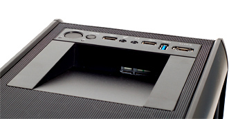 Přední porty: 2x USB 2.0, 1x USB3.0, 1x E-SATA, 1x SataDock, 1x mikrofon, 1x audio (AC'97 nebo HD)