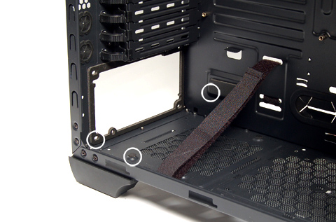 Novinkou, která se vyskytuje v moderních skříních čím dál tím častěji, je pás na suchý zip, kterým se upevňuje zdroj.