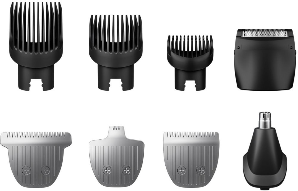 holiaci strojček pánsky, Hrebene 3 veľkostí pre dlhú bradu: 0,5–10 mm, 10–19,5 mm, 19,5–29 mm, zastrihnutie strniska, ostré kontúry, detailný zastrihávač, zastrihávač nosových a ušných chĺpkov, vodoodolnosť IPX6, AirTrim,Zobraziť viac