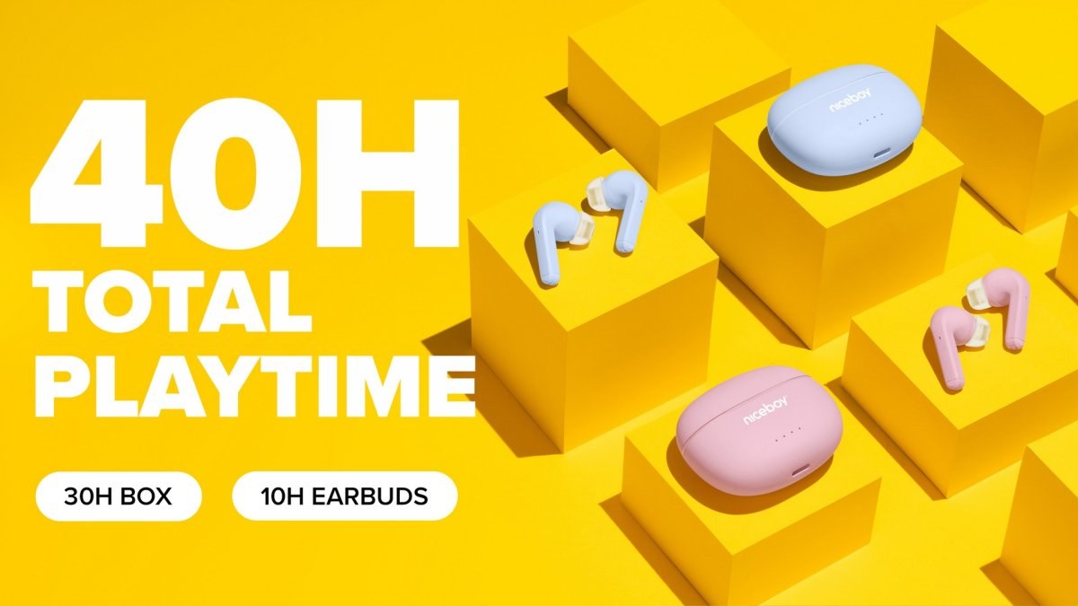Samotné slúchadlá Niceboy prehrávajú zvuk až 10 hodín bez toho, aby ste ich museli dobíjať. Pokiaľ však využijete nabíjacie puzdro, zvýši sa doba počúvania približne na ďalších 30 hodín. Akonáhle sa slúchadlá vybijú, stačí ich nabíjať po dobu 5 minút, aby ste mohli počúvať až 1,5 hodiny.Handsfree hovory a hlasový asistent