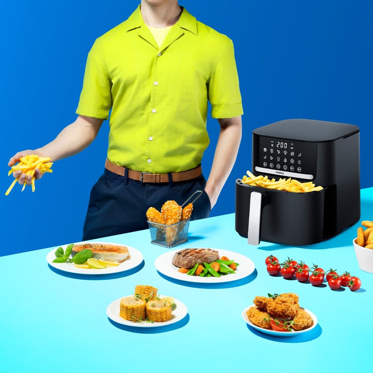 Niceboy ION AirFryer Pro vám umožní pripraviť zdravé a chutné jedlá s minimálnym množstvom oleja. Táto teplovzdušná fritéza je navrhnutá tak, aby poskytovala maximálnu flexibilitu pri varení, a to vďaka širokému rozsahu teplôt od 80 do 200 °C.