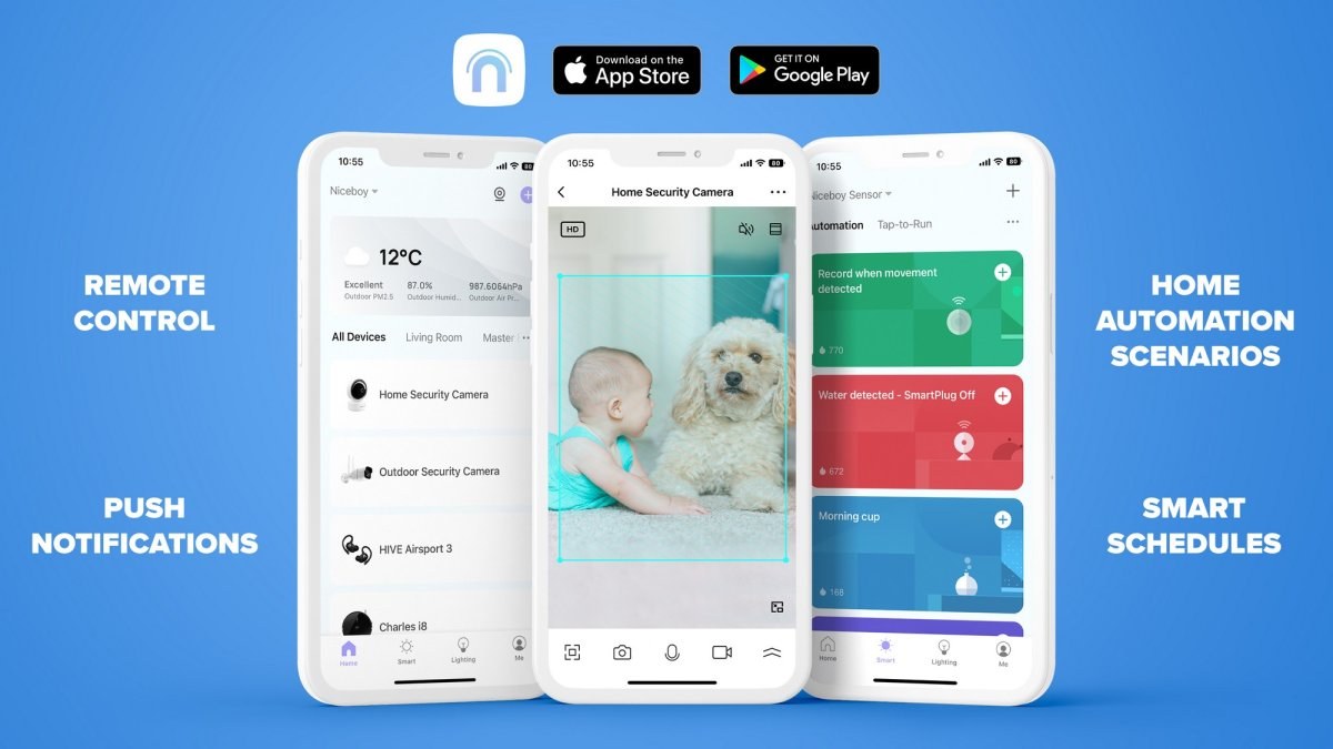 Stiahnite si bezplatnú aplikáciu Niceboy ION. Zjednodušíte si ovládanie kamery, sledujete priestor okolo domu alebo si prehráte uložený záznam. Ovládať ju môžete vy aj ostatní členovia domácnosti. Aplikácia navyše spolupracuje s ďalšími šikovnými zariadeniami značky Niceboy. Kameru ovládate aj pomocou hlasu cez Google Assistanta.Stráži vás cez deň aj v noci
