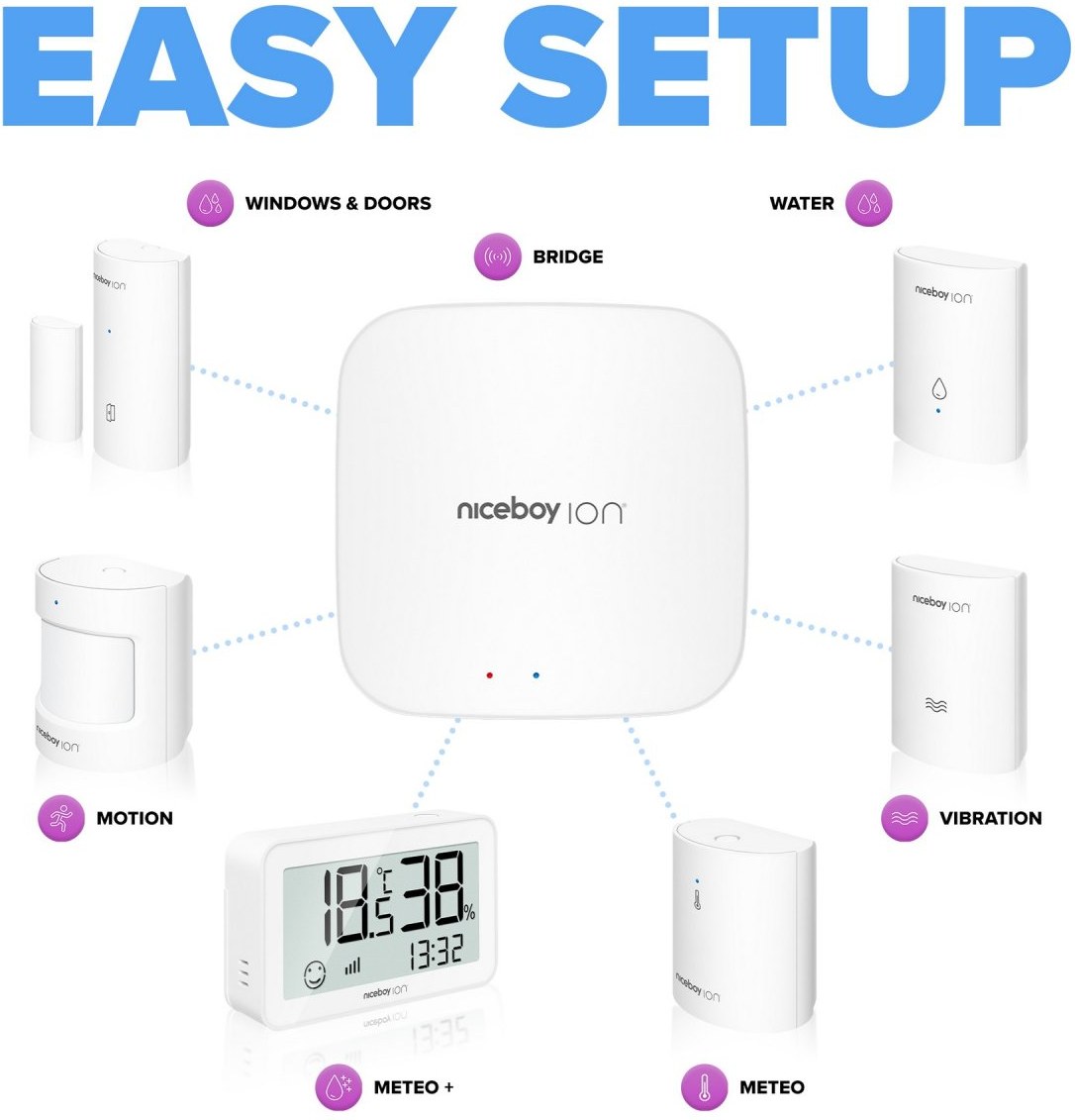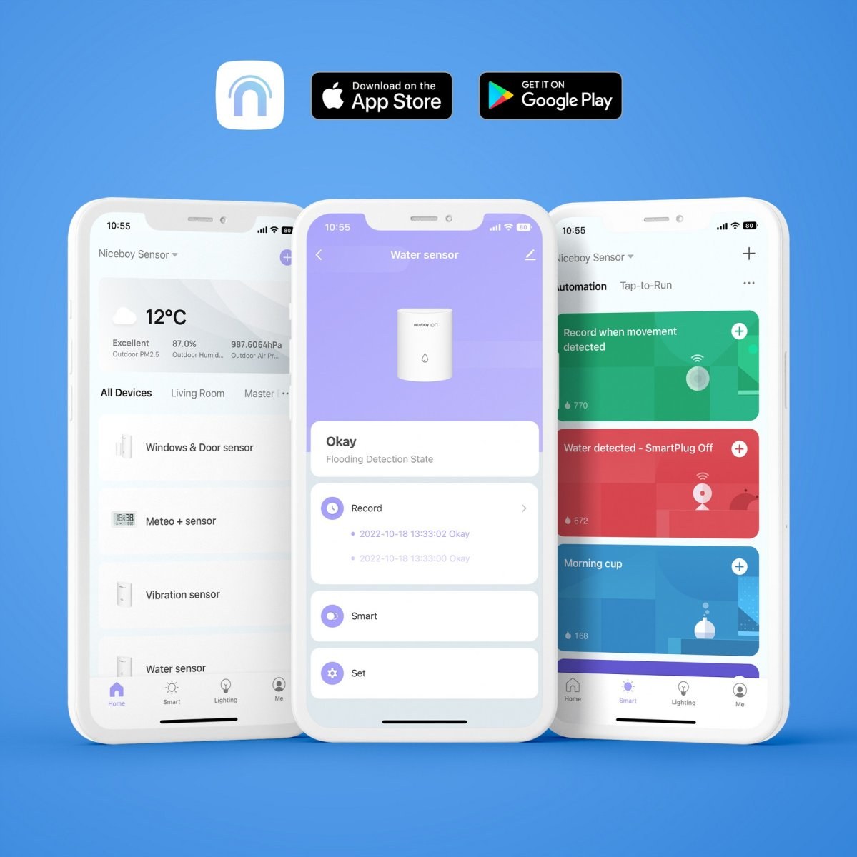 Montáž vodného senzora Niceboy ION ORBIS je rýchla a bezproblémová. Pre integráciu senzora do vašej smart domácnosti je nevyhnutná centrálna riadiaca jednotka Niceboy ION ORBIS Bridge. Nástroje na inštaláciu nie sú potrebné - senzor sa jednoducho upevní na požadované miesto pomocou dodávanej lepiacej pásky. Pri celom procese nastavenia vám poskytne pomoc mobilná aplikácia Niceboy ION, ktorá umožňuje konfiguráciu nastavení a spojenie senzora s ostatnými smart zariadeniami.Ovládajte svoj domov na diaľku