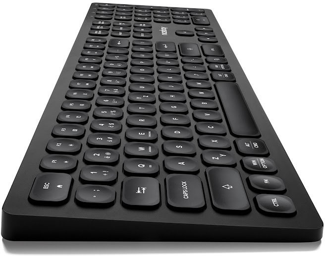 Klávesnica zaujme elegantným tenkým dizajnom a odolnou konštrukciou z kvalitného materiálu ABS, ktorý zaručuje dlhú životnosť a príjemné písanie.