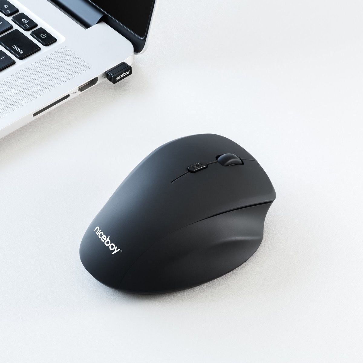 Bezdrôtová myš Niceboy Office M20 komunikuje s PC či notebookom až na vzdialenosť 10 m cez priložený 2,4GHz USB prijímač a je špeciálne určená pre každodenné použitie v domácnosti aj v kancelárii. Toto Plug-and-Play zariadenie uvediete do prevádzky ihneď po vybalení, takže sa pripojenie myši zaobíde aj bez akejkoľvek inštalácie pomocných nástrojov či ovládačov. O napájanie sa potom stará 1 AA batérie (súčasťou balenia) a pre lepšiu úsporu energie prejde myš po 10 minútach nečinnosti do režimu spánku, z ktorého sa prebudí pohybom. S rozmermi 5 x 8,2 x 11,5 cm a hmotnosťou iba 80 g získate príjemnejší úchop pri práci aj zábave a kompaktný dizajn myši oceníte aj z cestovných dôvodov, pretože nezaberá príliš priestoru v taške na notebook.Rýchle a presné snímanie pohybu