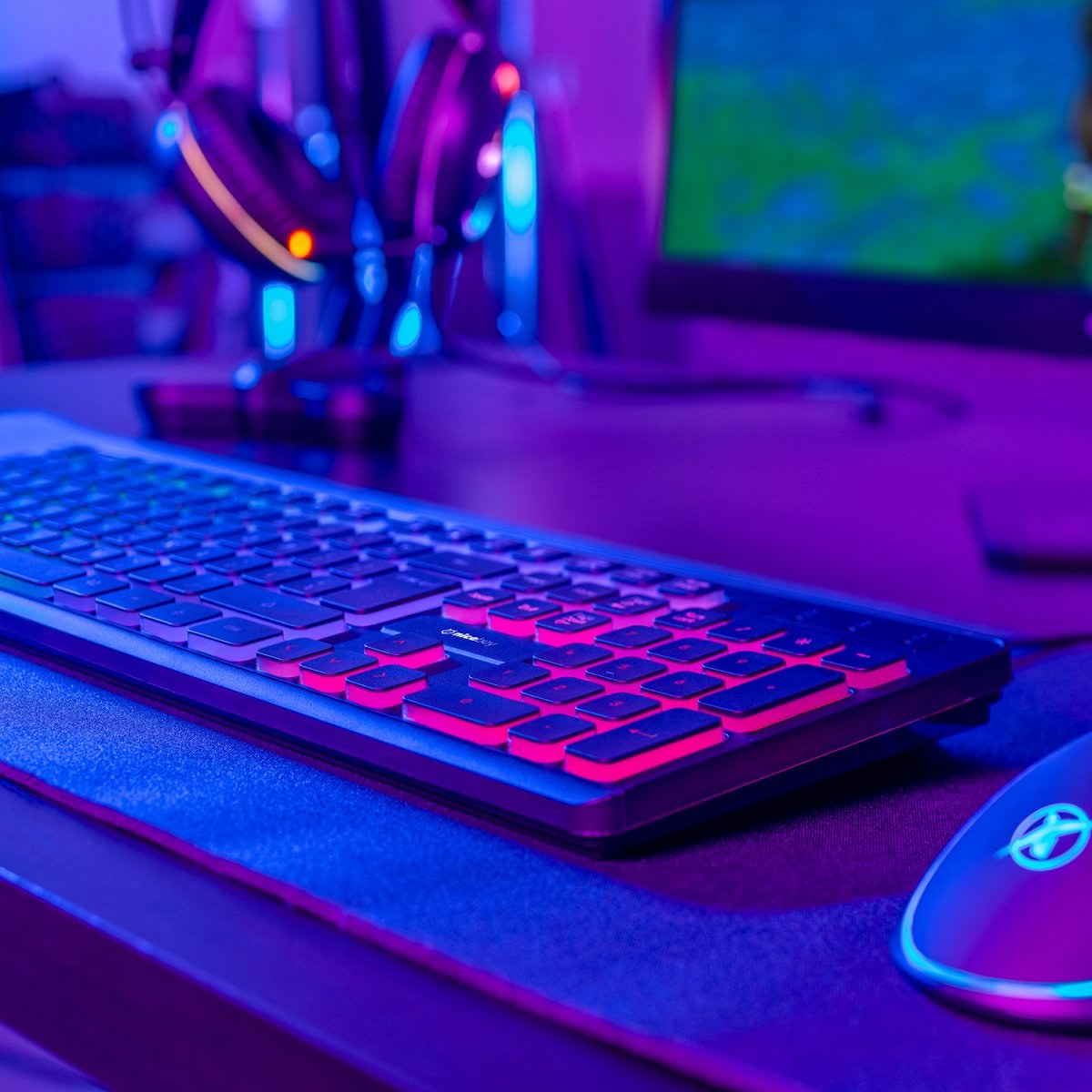 klávesnica, membránová, numerická časť, české rozloženie klávesov, nízky profil, pripojenie cez USB, Plug and Play, RGB podsvietenie, funkcia Winlock, 12 multimediálnych klávesov, kábel 1,5 mZobraziť viac
