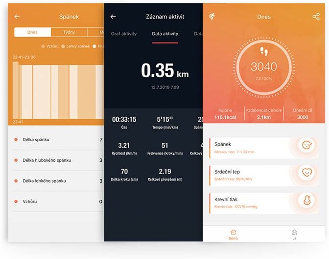 - Monitoring dennej aktivity (kalórie, kroky a ďalšie)
