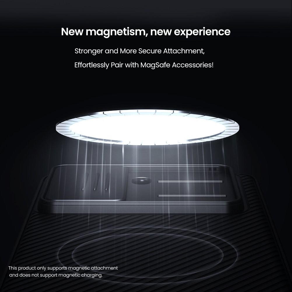 Nillkin CamShield PRO Magnetic je unikátny kryt s posuvným krytom šošovky fotoaparátu a integrovaným magnetom. Oproti klasickému CamShield je unikátny v tom, že sa skladá z dvoch materiálov a je vybavený magnetom. Chrbát krytu je vyrobený z pevného a odolného plastu a to vrátane krytu fotoaparátu. Rámček krytu je vyrobený z mäkčeného TPU plastu, pre najlepšiu ochranu okrajov a rohov telefónu. Oba dva materiály sú vysoko odolné proti opotrebovaniu, ale aj proti odtlačkom prstov a mastnote. Presné výrezy na ovládacie prvky a potrebné konektory zaisťujú pohodlnú obsluhu telefónu.Vlastnosti