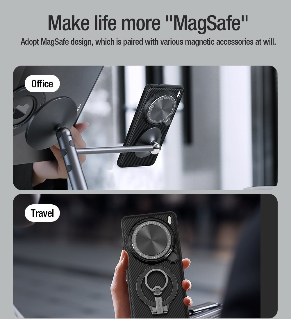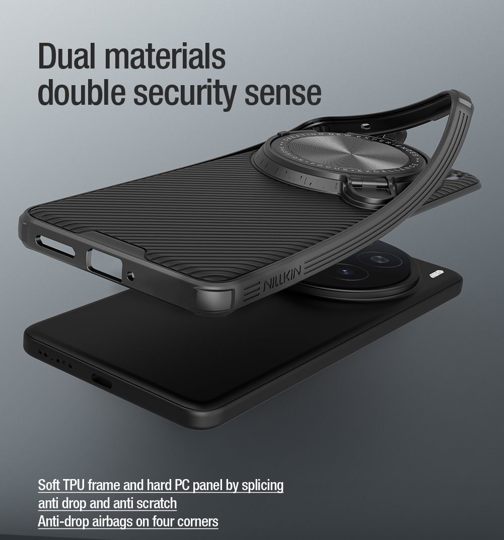 Nillkin CamShield Prop Magnetic je unikátny zadný kryt s výklopným krytom šošovky fotoaparátu a integrovaným magnetom. Chrbát krytu je vyrobený z pevného a odolného plastu, ktorého súčasťou je aj magnet. Rámček krytu je vyrobený z mäkčeného TPU plastu, pre najlepšiu ochranu okrajov a rohov telefónu. Oba dva materiály sú vysoko odolné proti opotrebovaniu, ale aj proti odtlačkom prstov a mastnote. Presné výrezy na ovládacie prvky a potrebné konektory zaisťujú pohodlnú obsluhu telefónu. Kryt fotoaparátu nielen že chráni, ale v prípade vyklopenia môže slúžiť ako stojan.Vlastnosti