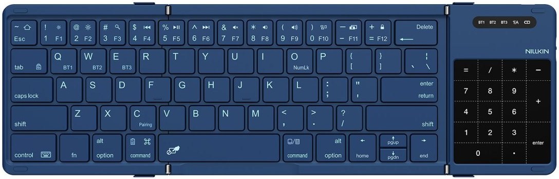 klávesnica, kancelárska, bluetooth, US/UK - anglické, nepodsvietená, tichý klik (silent click), modráZobraziť viac
