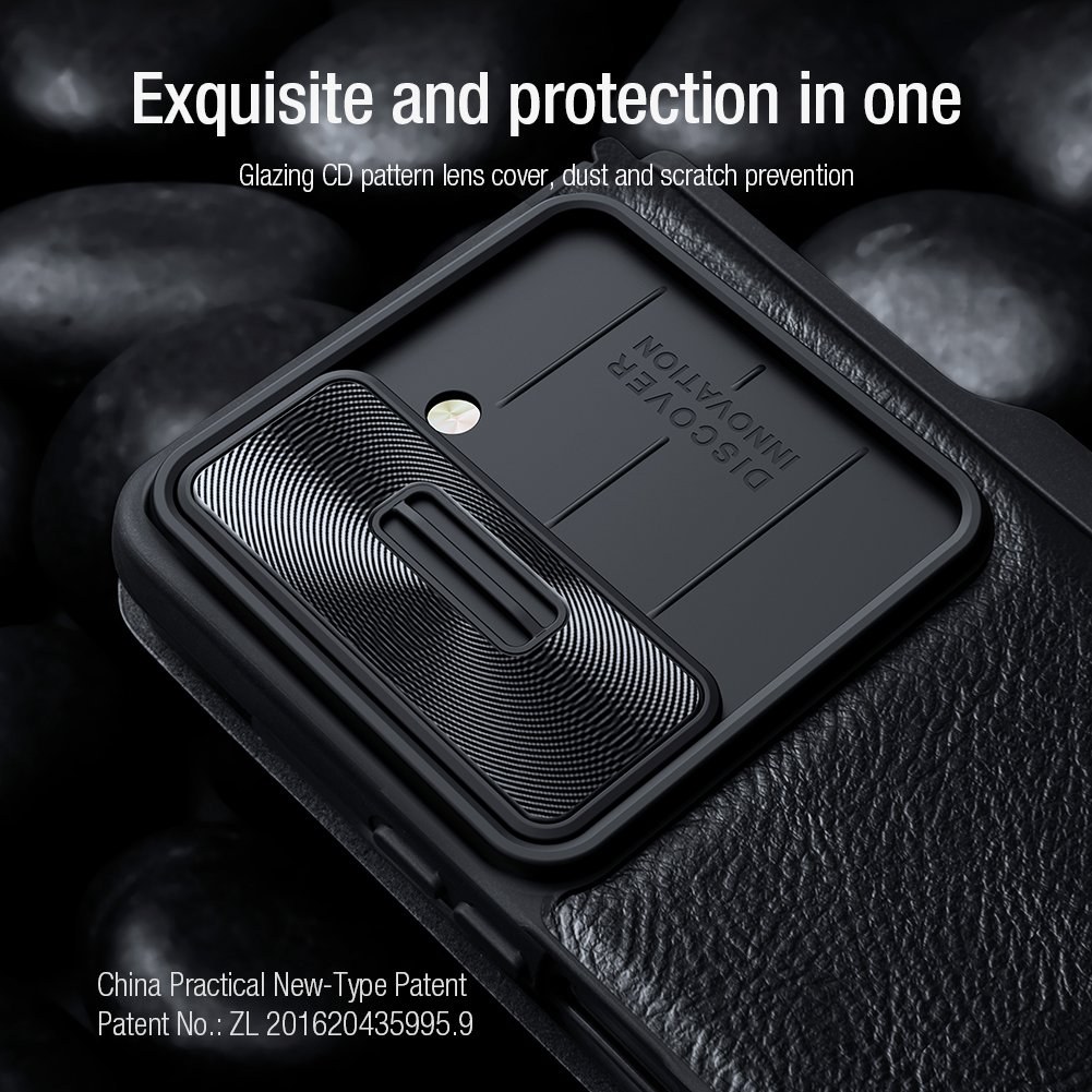 Nillkin QIN Book PRO púzdro je vyrobené z kvalitnej PU kože a TPU.Oproti klasickému QIN Book je vybavené posuvným krytom šošoviek fotoaparátu.