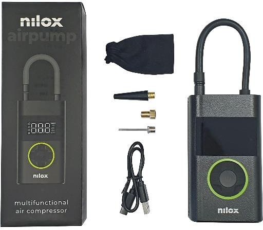 Kompaktný a výkonný prenosný kompresor URBAN značky nilox, ideálny na nafukovanie bicyklov, áut, motocyklov, kolobežiek či lôpt.S tlakom až 150 PSI (10 barov) zaručuje rýchle a efektívne nafukovanie. Vďaka intuitívnemu LCD displeju môžete presne sledovať aktuálny tlak a pomocou prednastavených režimov nafukovania si jednoducho vybrať správny tlak pre rôzne typy pneumatík či lôpt. Alternatívne je možné použiť manuálny režim pre individuálne nastavenie. Kompresor je vybavený vysokokapacitnou 4000 mAh batériou a možno ho pohodlne nabiť prostredníctvom USB-C konektora a nabíjacieho kábla (je súčasťou balenia).