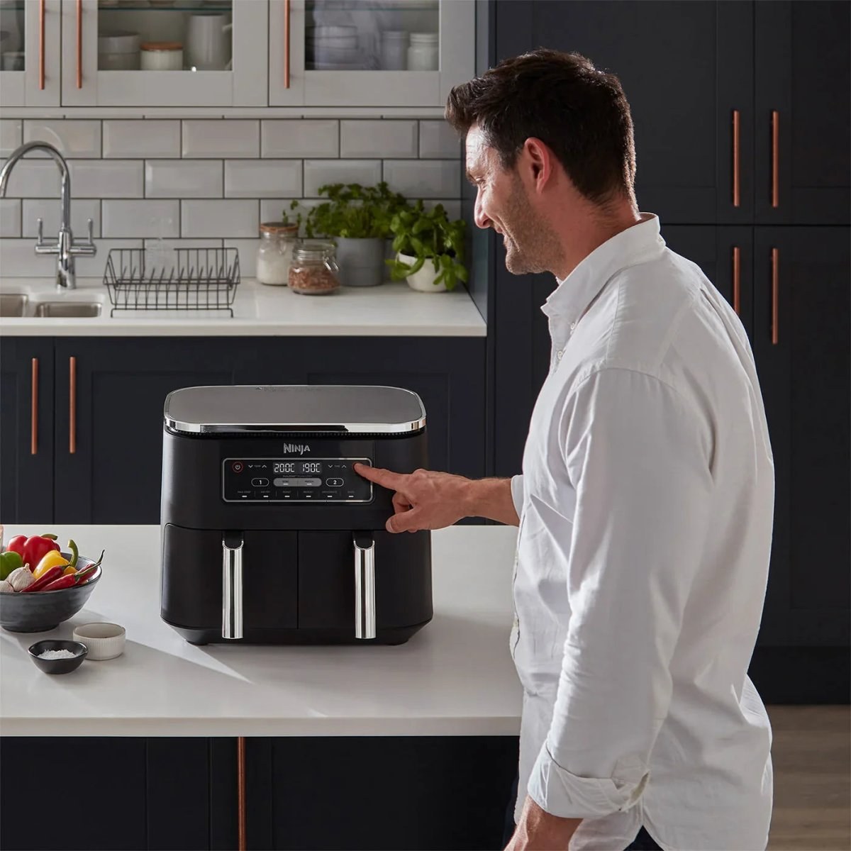 Fritéza ponúka až 6 rôznych režimov: Max Crisp, Air Fry, Roast, Bake, Reheat a Dehydrate. Vďaka tejto všestrannosti zvládneš pripraviť chrumkavé hranolky, šťavnaté mäso, nadýchané koláče či sušené ovocie. Jednoduché ovládanie ti umožní prispôsobiť varenie presne podľa tvojich potrieb