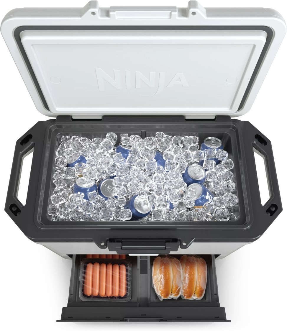 Ninja FB151EUGY je odolný pasívny chladiaci box s objemom 47 litrov. Navrhnutý je tak, aby udržal ľad až 6 dní a potraviny v optimálnej teplote pod 4,5 °C bez nutnosti pripojenia k elektrine. Vďaka inovatívnej technológii FrostVault ponúka samostatnú suchú zónu, ktorá udrží potraviny mimo vlhkosti a pomáha predĺžiť ich čerstvosť.Dlhodobé udržanie chladu
