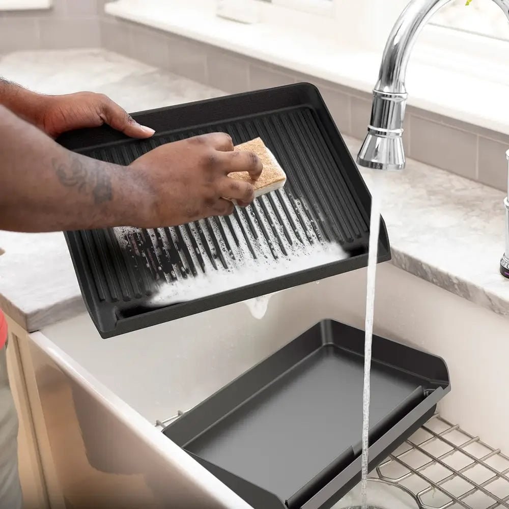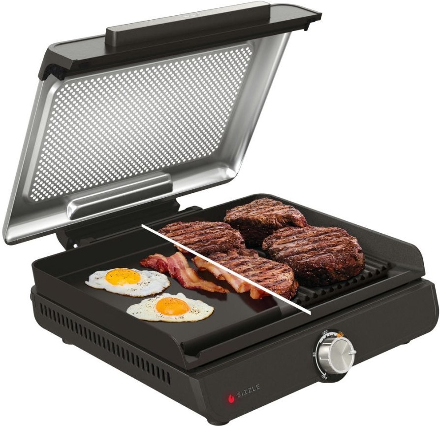 Gril obsahuje hladkú aj rebrovanú dosku, ktoré môžeš jednoducho vymieňať podľa typu jedla. Hladká doska je ideálna na palacinky, vajíčka či teppanyaki, zatiaľ čo rebrovaná dodá mäsu autentický grilovaný vzhľad. Oba povrchy sú nepriľnavé a vhodné do umývačky riadu.