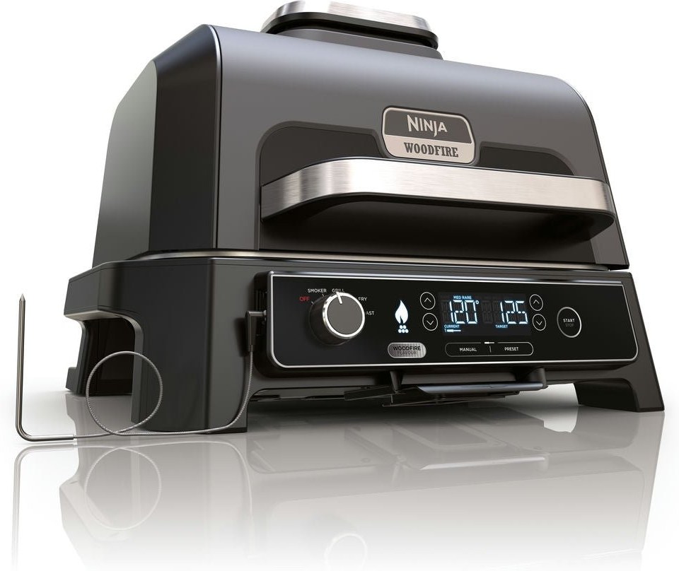 Ninja OG850EU Woodfire Pro XL je výkonný elektrický gril, ktorý spája tradičnú chuť dreva s moderným komfortom. Vďaka rozšírenej kapacite, vstavanému teplomeru a technológii Woodfire je ideálny na rodinné BBQ aj gurmánske experimenty. Stačí ho zapojiť do zásuvky a môžete grilovať, údiť, piecť či fritovať bez plynu, uhlia alebo kompromisov.