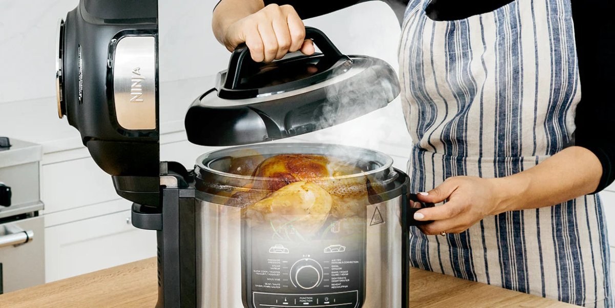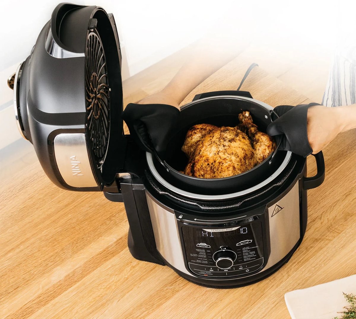 Spojenie tlakového varenia a teplovzdušného opekania umožňuje najprv uvariť jedlo domäkka a potom ho dokonale dochrumkavať. Výsledok? Mäso šťavnaté vo vnútri, chrumkavé navonok bez nutnosti použiť rúru či panvicu.