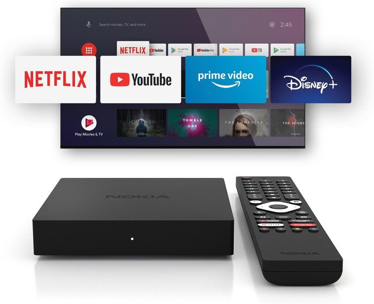 Pripojte tento Streaming Box k Vášmu televízoru pomocou pripojenia HDMI a urobte z neho super výkonný Smart TV so systémom Android! Užite si akúkoľvek z viac ako 7000 aplikácií, ako sú Netflix, HBO GO, Skylink LIVE, Disney +, Prime Video alebo YouTube, kde si môžete pozrieť svoje obľúbené filmy, seriály, dokumenty a oveľa viac.Nokia Streaming box 8000 je jeden z mála certifikovaných Android TV boxov na trhu s najvýkonnejším chipsetom S905X3 (prečítajte si výhody) a najnovším Android TV vo verzii 10, vďaka čomu má systém dostatok energie na použitie akejkoľvek aplikácie a vysoko výkonom prevyšuje napr. populárny Xiaomi Mi TV-Box. Vďaka Nokii získava aktualizácie cez OTA - jednoducho online a automaticky.