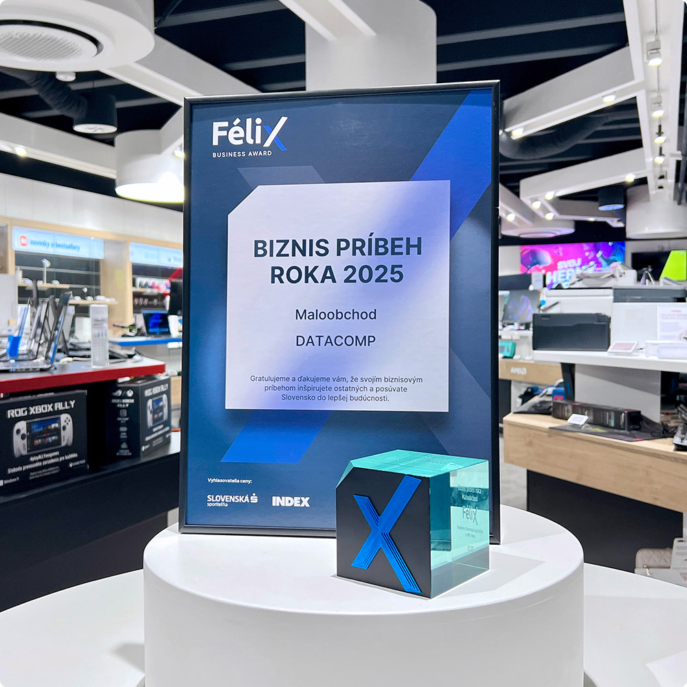 S radosťou oznamujeme, že spoločnosť Datacomp získala prestížne ocenenie FéliX Business Award 2025 v kategórii Biznis príbeh roka – Maloobchod. Ďakujeme všetkým našim zákazníkom, partnerom a kolegom, ktorí sú súčasťou Datacomp príbehu. Vážime si vašu dôveru a podporu.