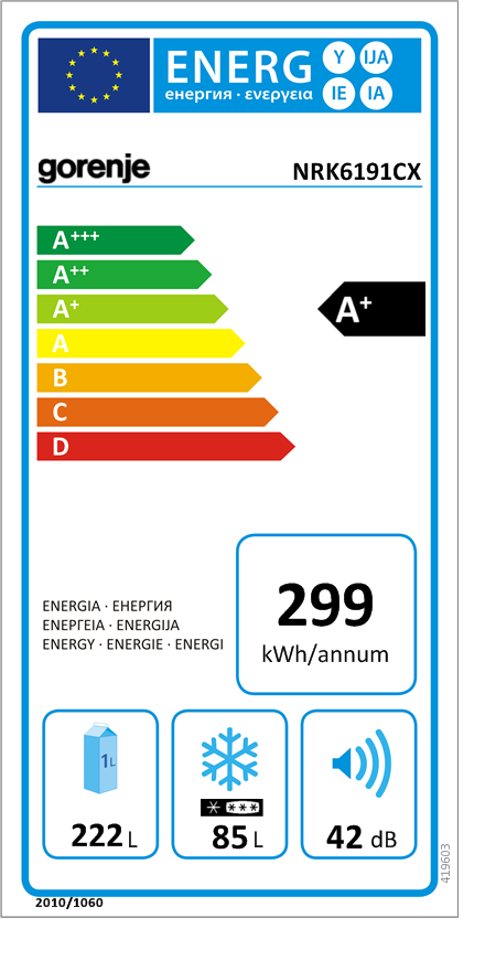 Kombinovaná chladnička s mrazničkou doleEnergetická trieda A +